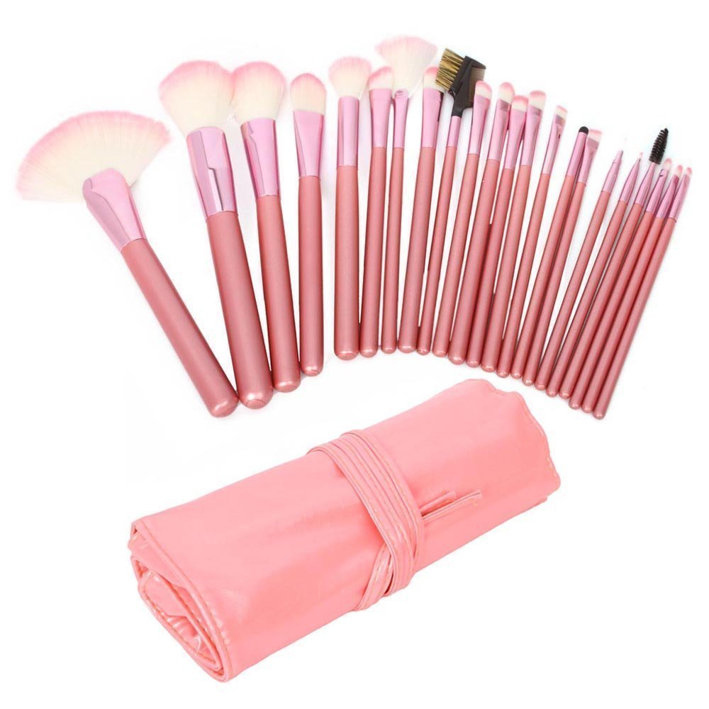 Vanz® Professional 22 PCS Make up Cosmetic Brushes Set Kit Eyeshadow Eyebrow Eyelash Eyeliner Lip Powder Blush Face Brush with Pink Bag Case Pouch,Hot Pink